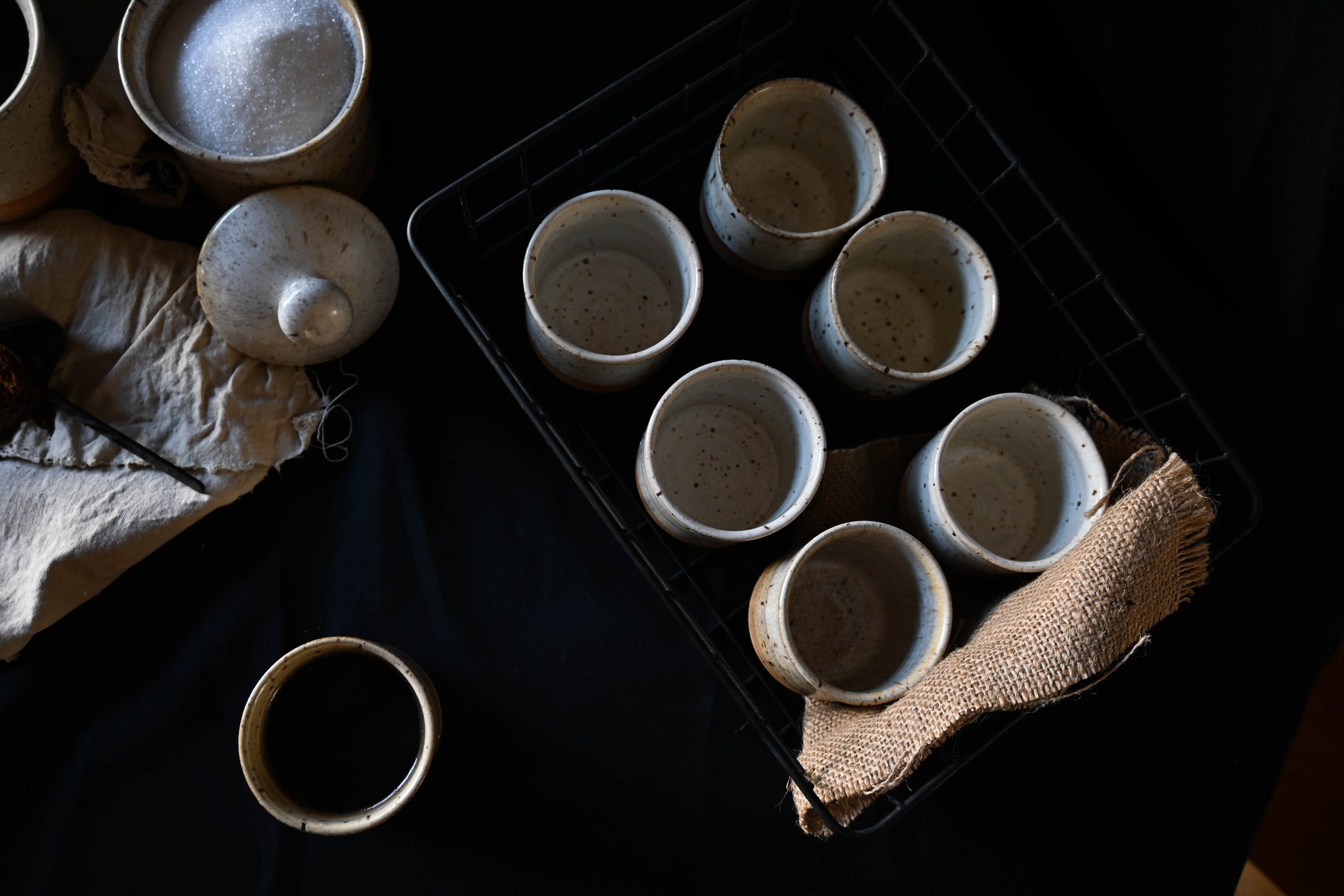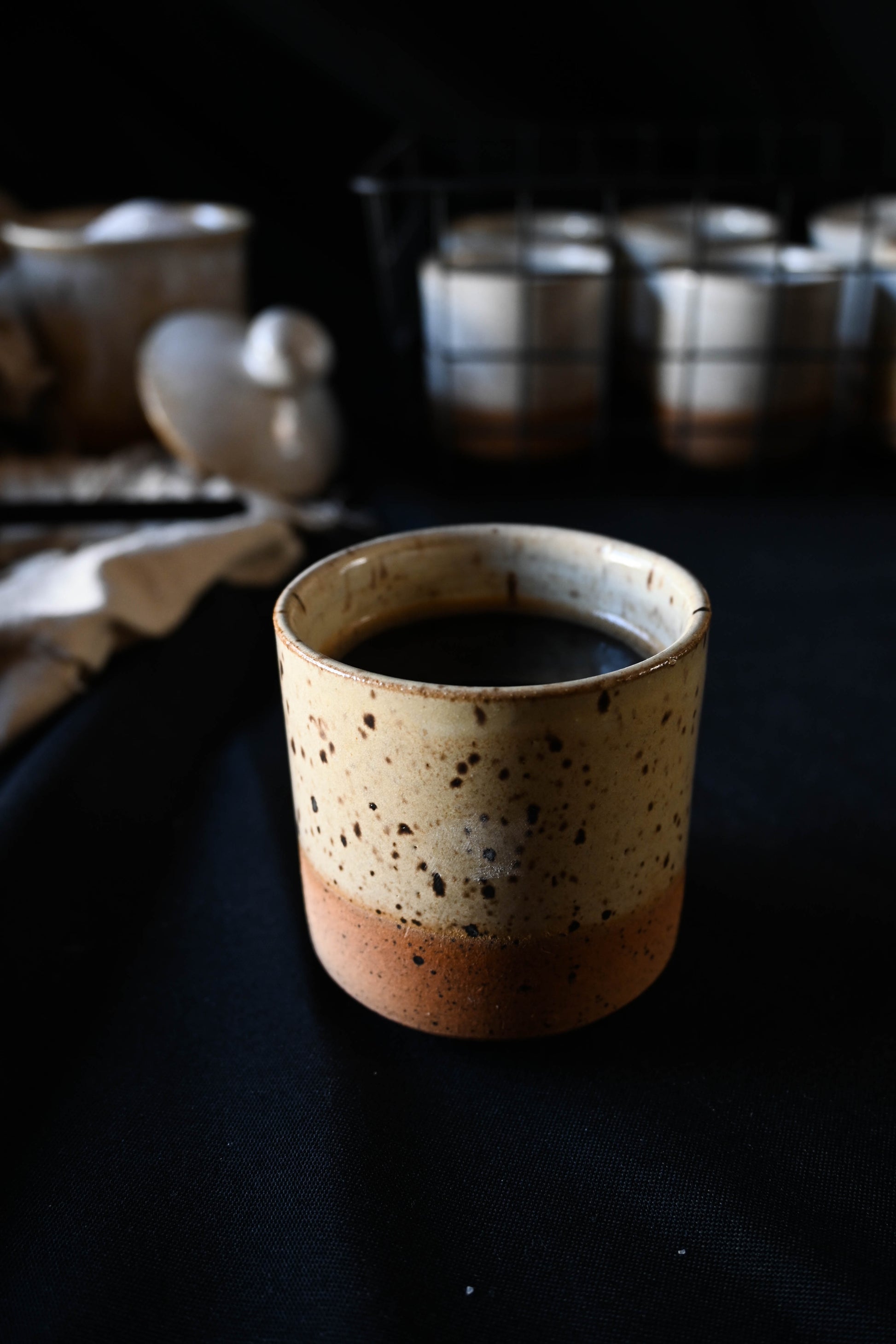 Stoneware ceramic mug, glazed only on its matte white interior that exposes the raw raw material to the outside.