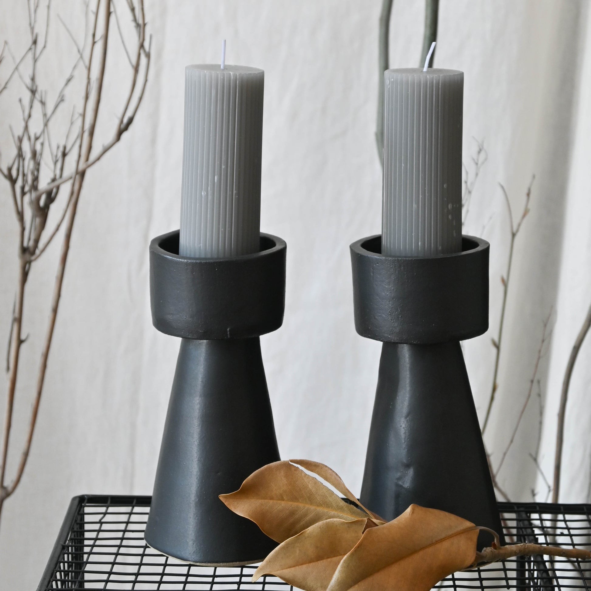 Candelabro negro caracterizado por su diseño simple, añade un toque ya sea que los coloques como piezas individuales o en grupo, estos candelabros añadirán un toque a cualquier ambiente.