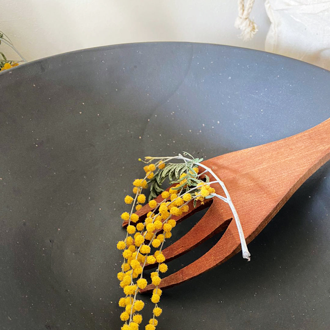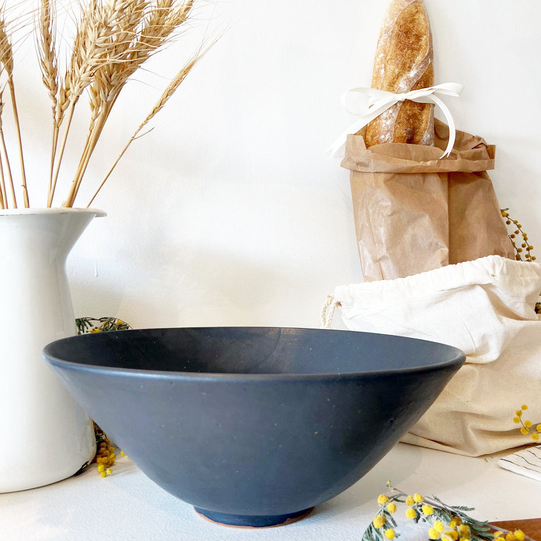 Fuente de cerámica de gres tipo perfecta para ensaladas o decoración de una mesa. Hecha a mano en chile.