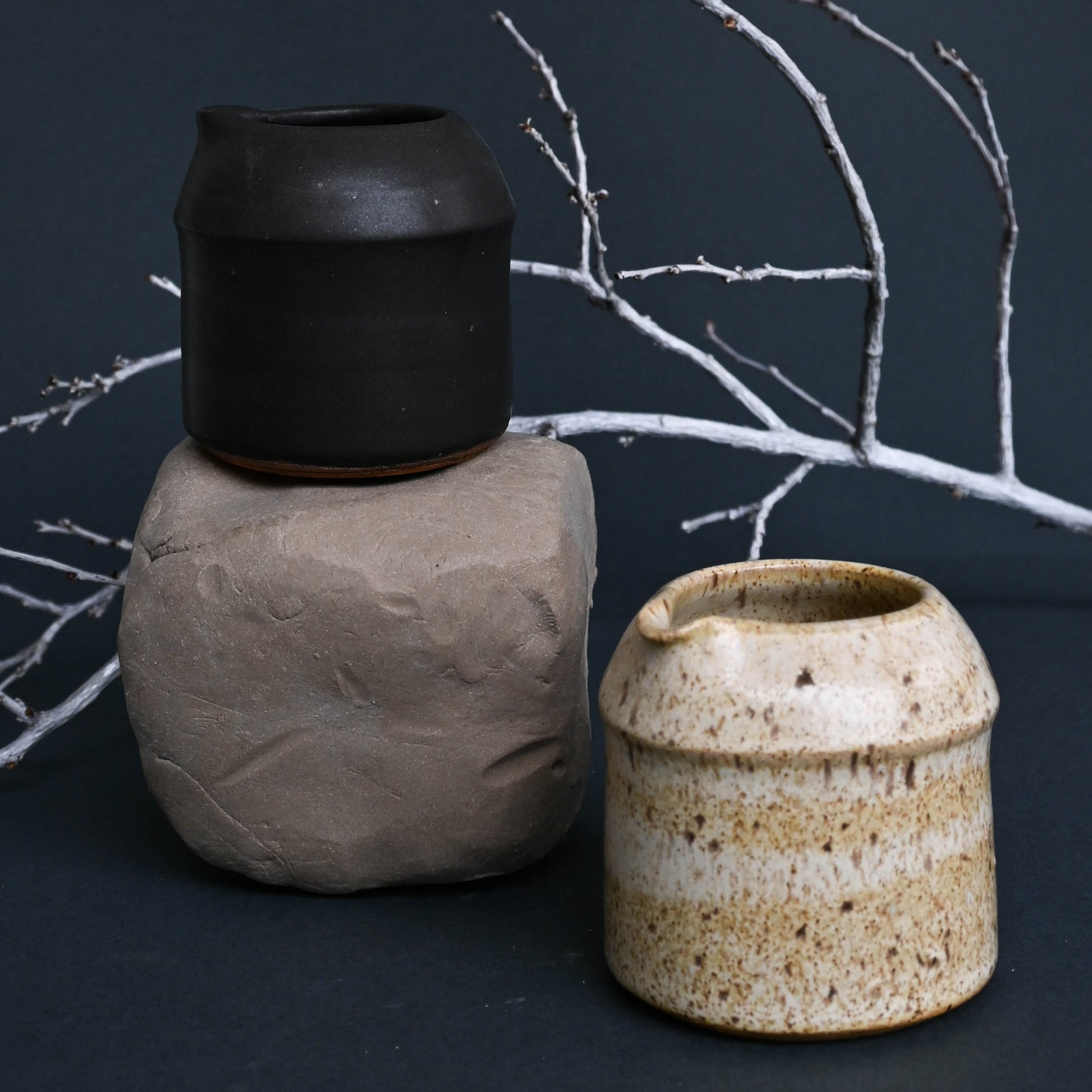 Jarrita de cerámica de gres pequeña, perfecta aliños como soya o limón. Pieza hecha a mano que valora el proceso de diseño y del material.