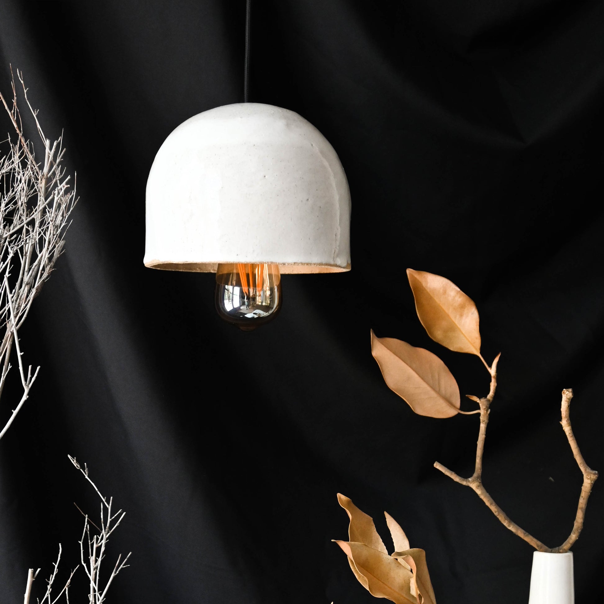 Lámpara de cerámica de gres rústica. Diseño simple y limpio. Pieza hecha a mano que valora el proceso de diseño y del material. Producto nacional.