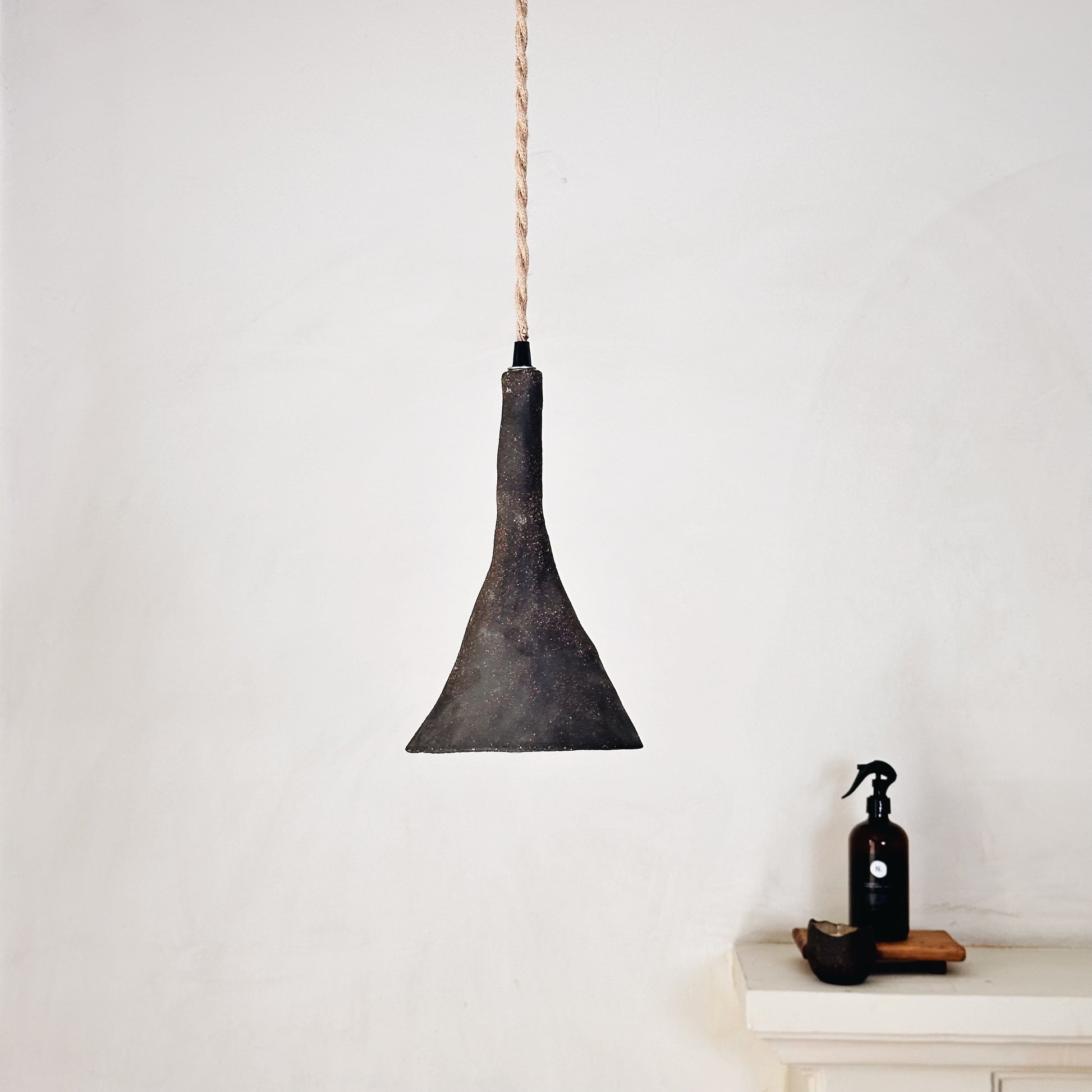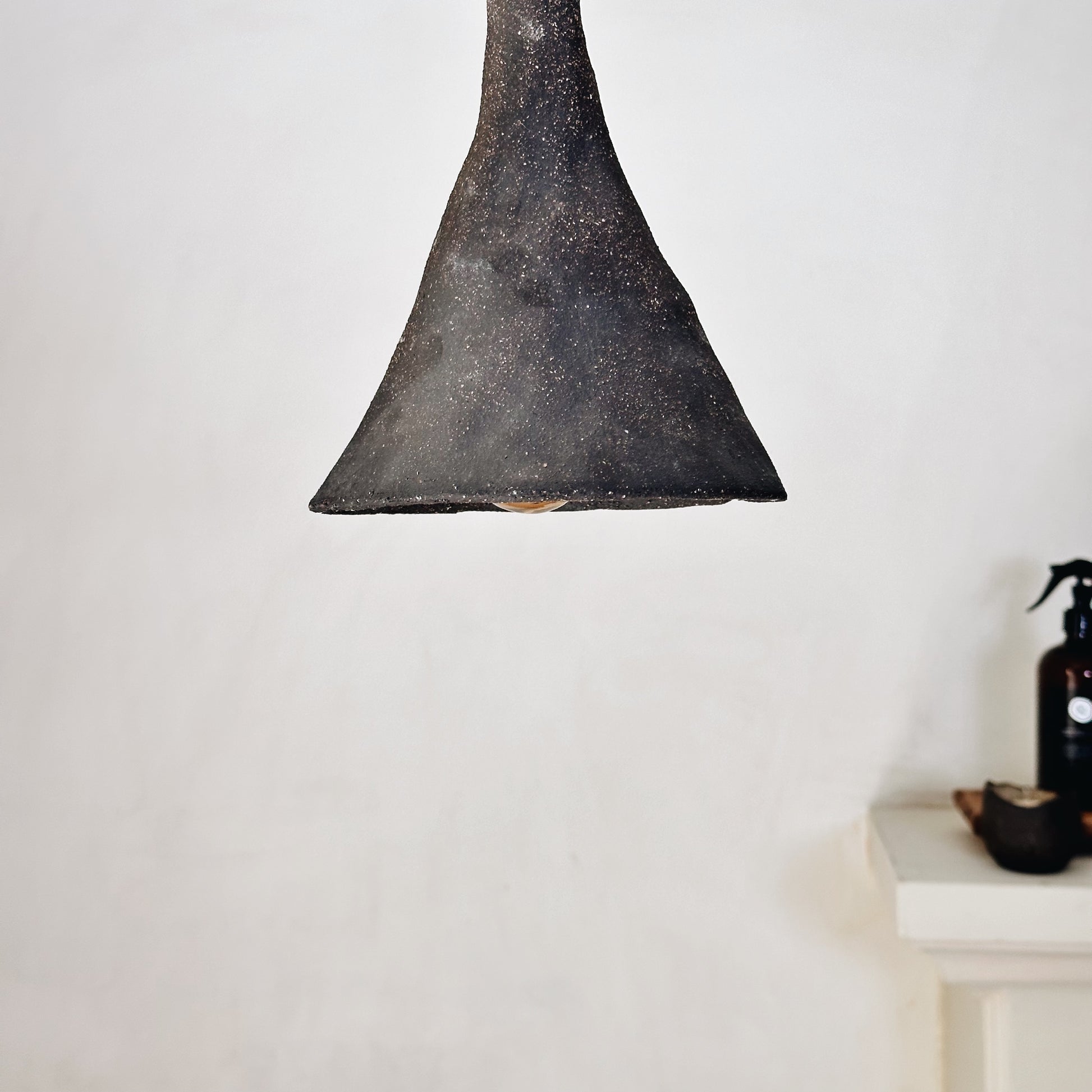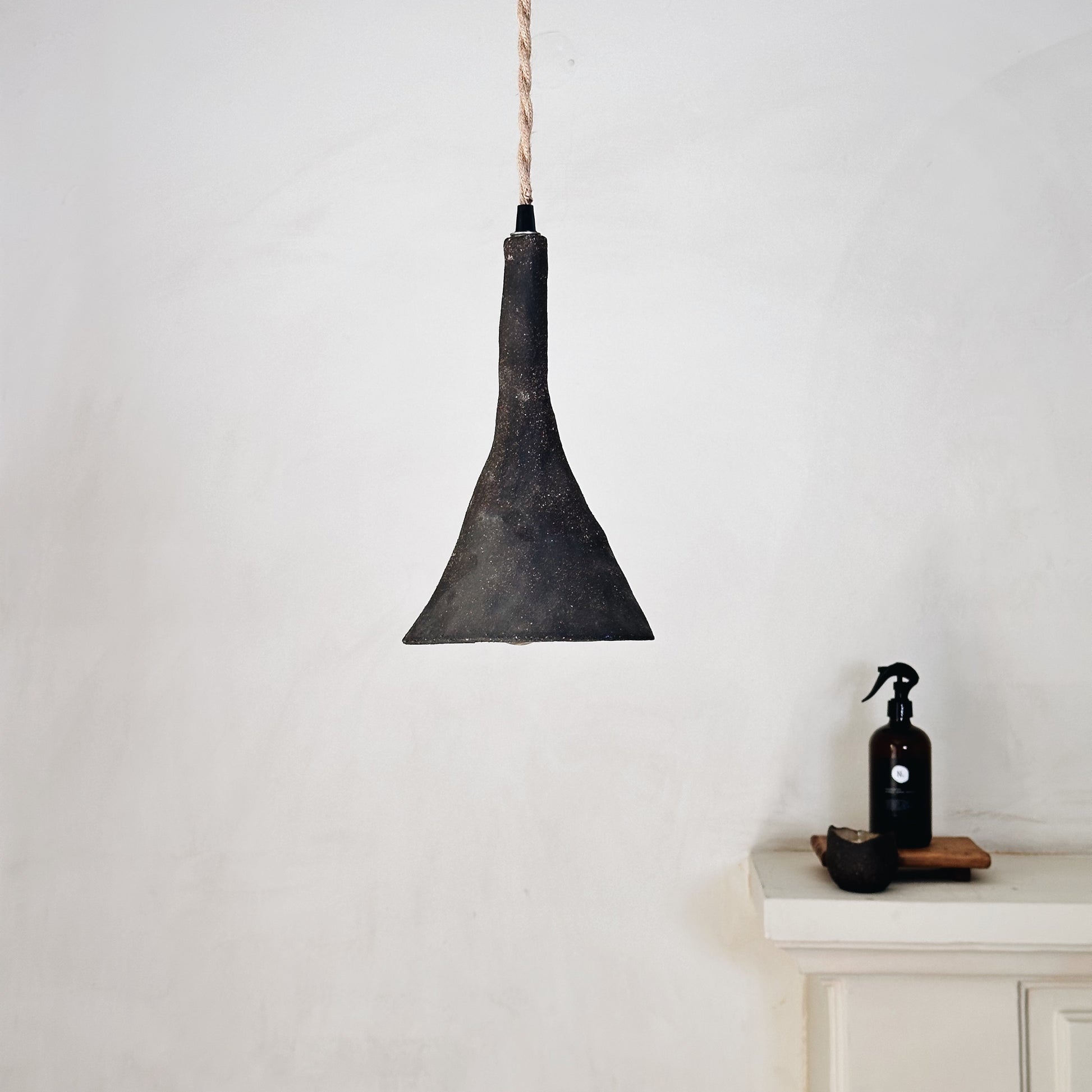 Lámpara de cerámica de gres rústica. Diseño simple y limpio. Pieza hecha a mano que valora el proceso de diseño y del material. Producto nacional.