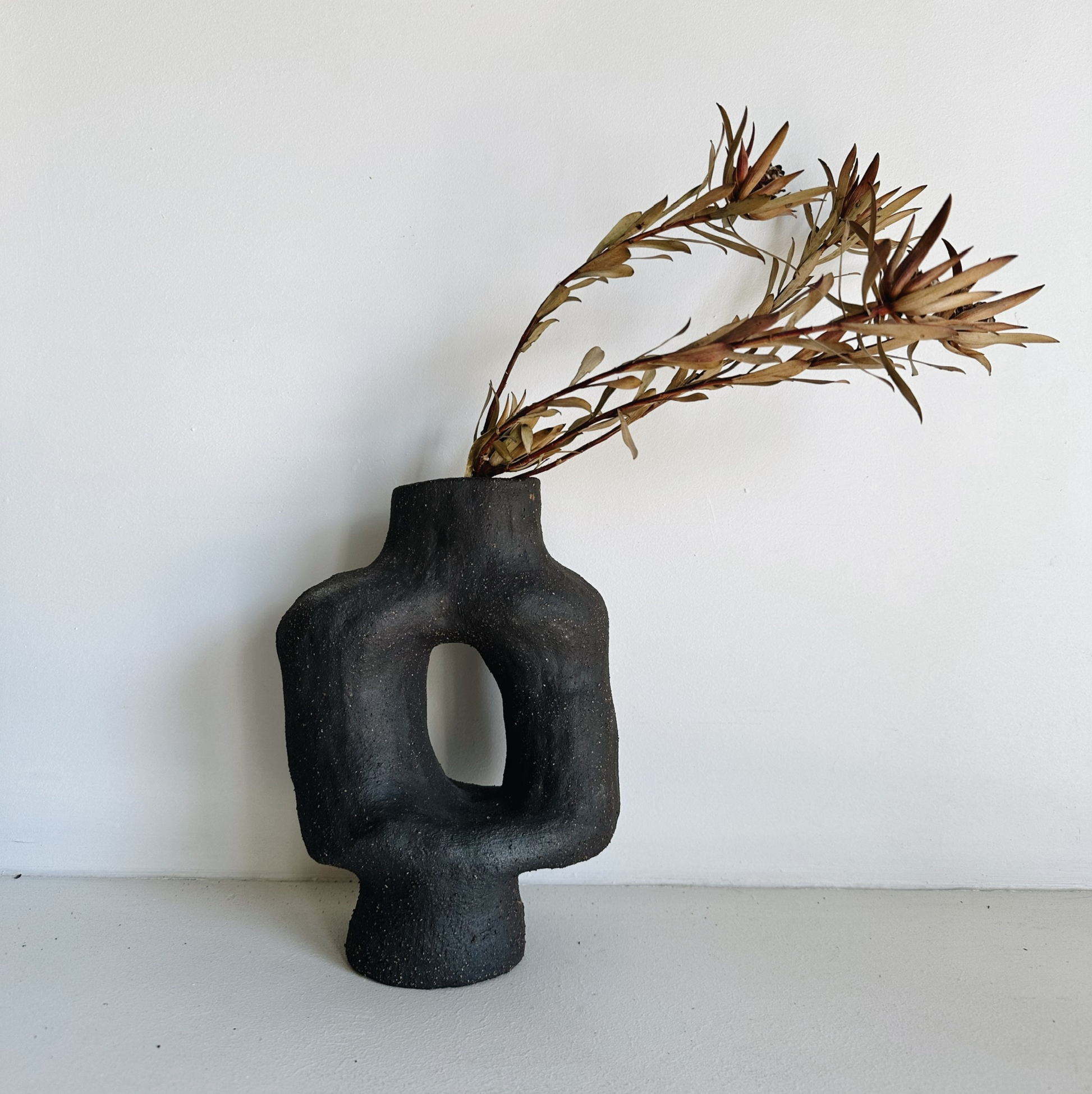 Florero Irregular modelado en cerámica gres rústica, pieza única e irrepetible.