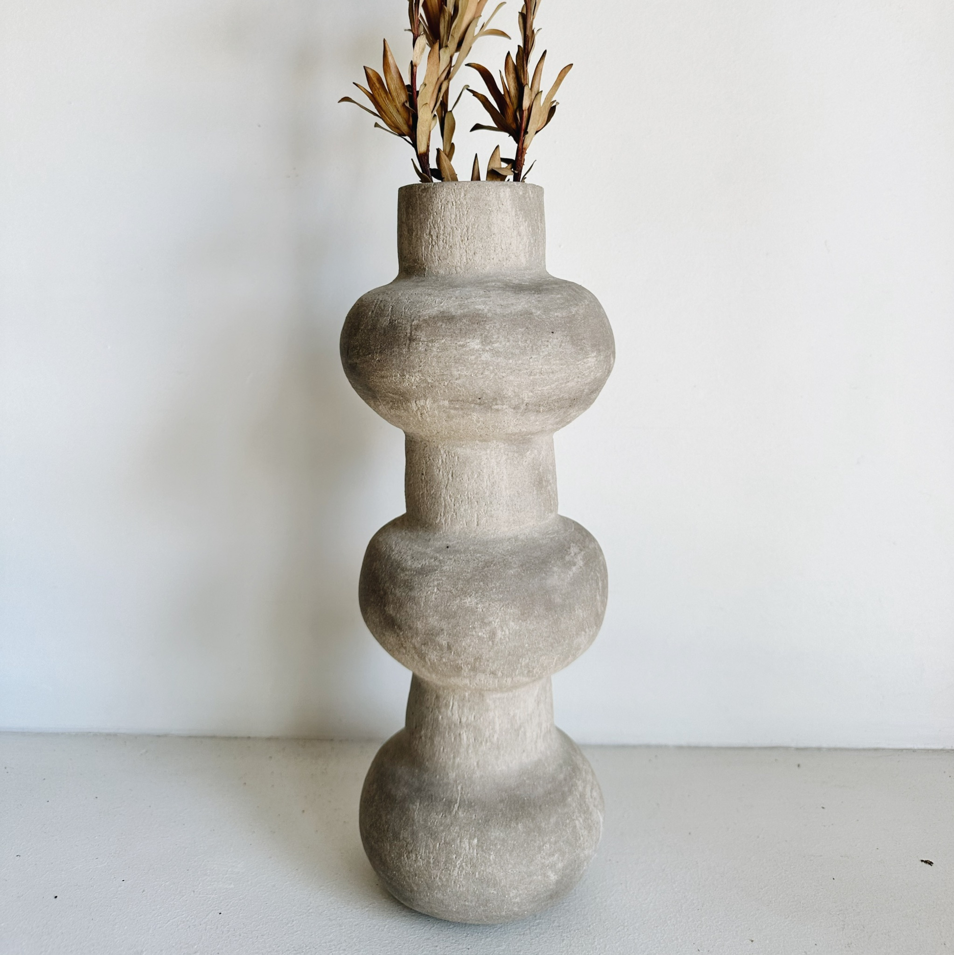 Pieza única modelada que evoca la singularidad de la forma. Con su diseño orgánico y textura distintiva, este florero añade un toque de encanto rústico a cualquier espacio. Perfecto para exhibir tus flores favoritas de una manera única y elegante.