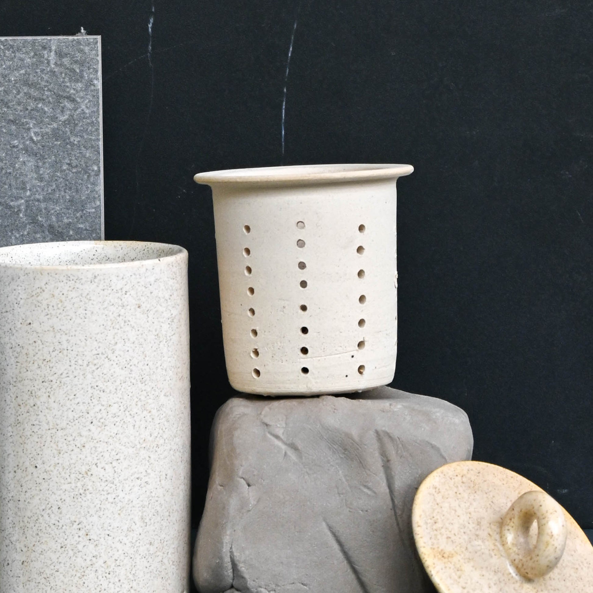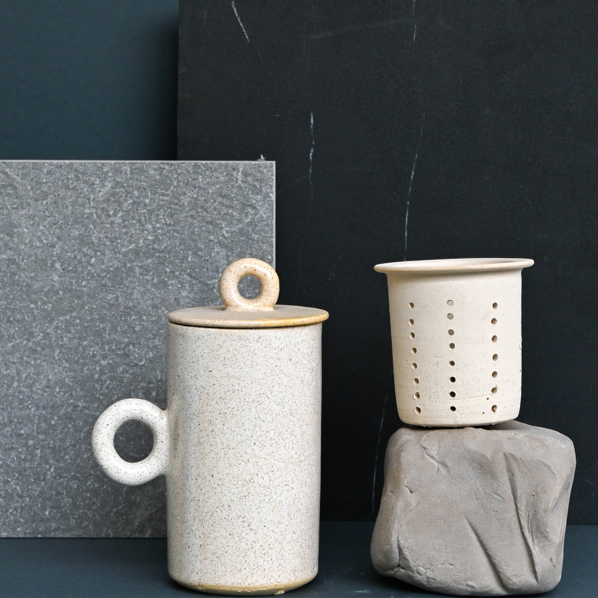 Taza con colador de cerámica gres, para colar el té y poder tomar directamente desde la taza, ideal para fanáticos del té.