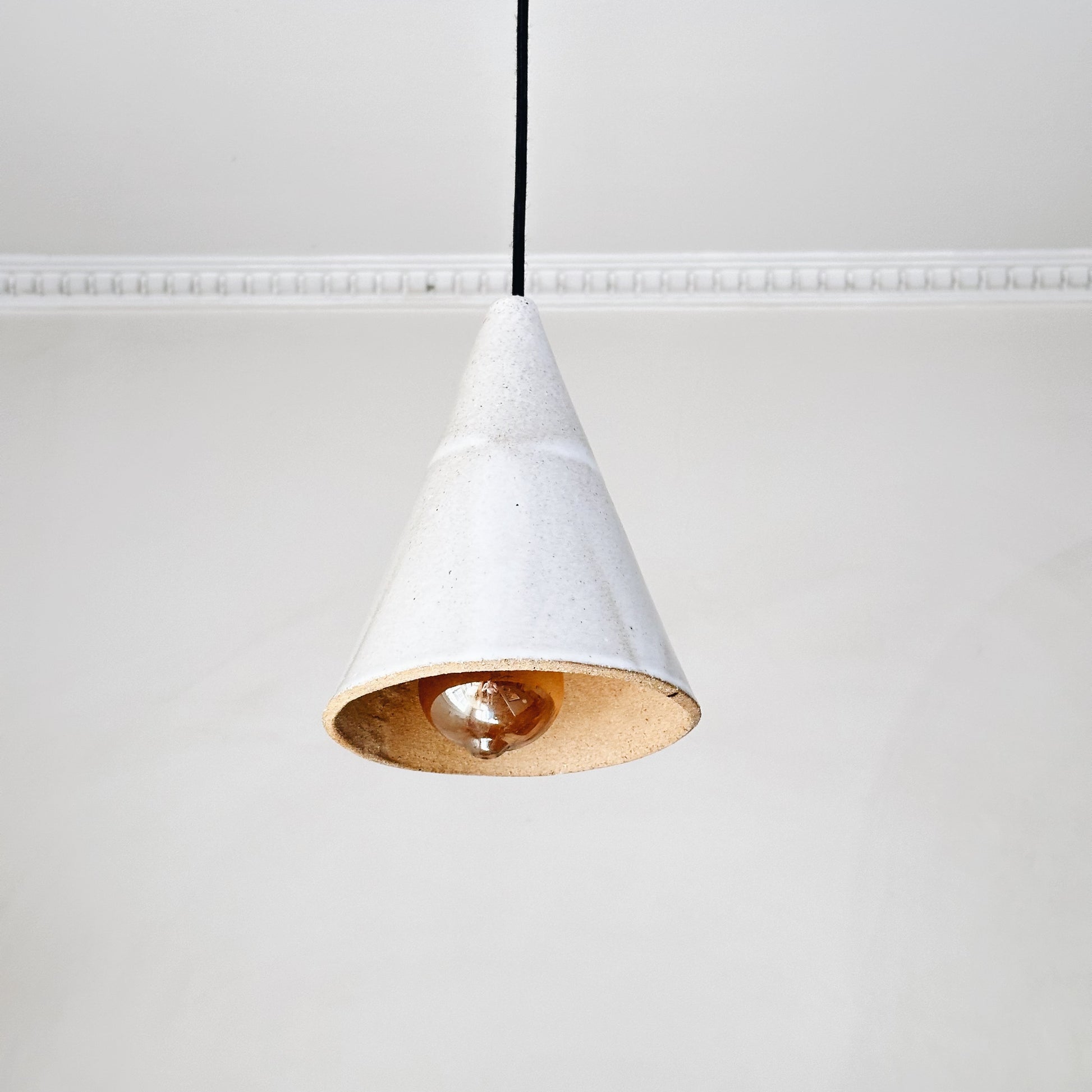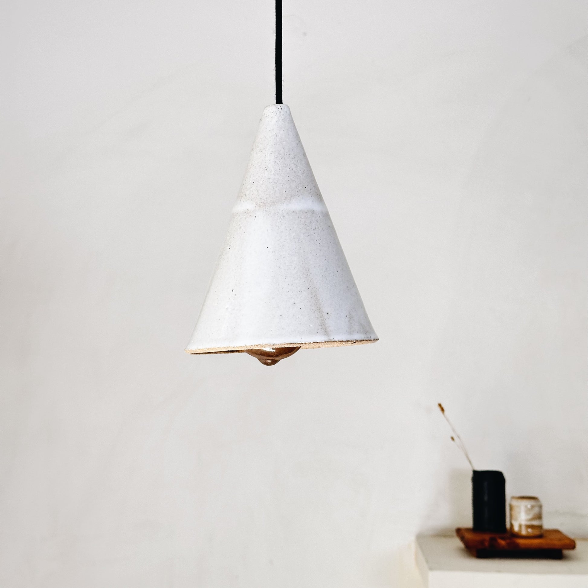 Lámpara Cono de cerámica blanco brillante que resalta tus espacios generando calidez.